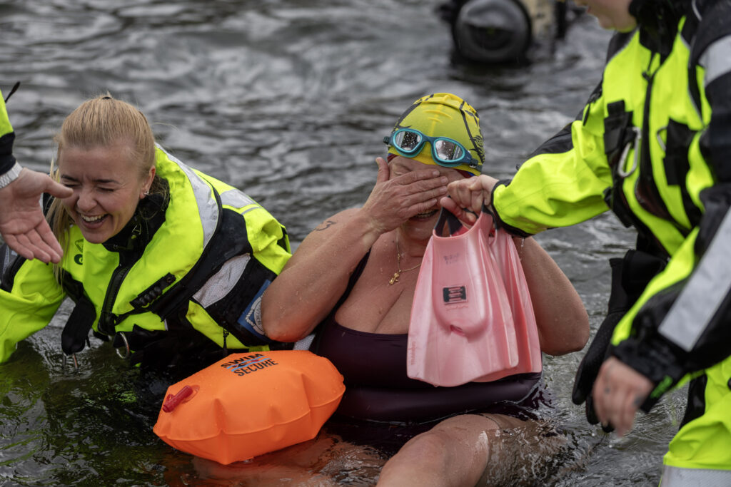 Að þessu sinni voru það 39 ofurkappar sem lögðu af stað með góðar óskir og kapp í kinn, sumir í einföldum sundklæðnaði, aðrir gallaðir upp fyrir haus og út í fingur og tær en þar sem ekki er um að ræða keppni eru öll hjálpartæki svo sem eins og froskalappir og gallar leyfilegir en fjarri því að allir nýti sér það. En hjálpsemi er í hávegum höfð og ef þarf aðstoða næsta syndara í land, er oft einhver í nálægð sem hysjar fólk í land.